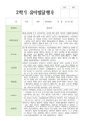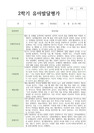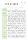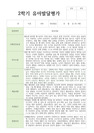 | 설명 : 2학기 유아발달평가 담임 원장 반 이름 000 생년월일 년 월 일 (만 4세) 관련영역 발달내용 신체건강운동 활동 시 몸의 움직임이 매끄럽고 안정적이며, 다양한 상황에서 속도와 힘을 적절히 조절한다. 실외에서 달릴 때는 뛰는 폭이 일정하고, 방향을 틀 때도 몸을 지나치게 흔들지 않아 자연스럽게 이동한다. 낮은 장애물을 지날 때는 발을 정확히 올리고 손을 곁에 두어 균형을 유지하는 능력이 뛰어나다. 실내에서는 작은 조각을 이어 붙이거나 실 낚시 활동에서 손의 힘을 세밀하게 조절하며 집중력이 높게 유지된다. 활동 후에는 스스로 땀을 닦고 물을 마시는 등 신체 상태를 잘 관리하는 모습도 보인다. 의사소통 말을 할 때 문장 구성력이 뛰어나며, 상황을 논리적으로 재구성하여 표현하는 능력이 우수하다. 놀이 도중 “이쪽 길을 넓히면 더 많은 차가 지나갈 수 있어”처럼 문제를 분석해 설명한다. 책을 읽을 때는 인물의 감정뿐 아니라 배경에 숨겨진 단서에도 주목하며 자신만의 해석을 덧붙인다. 친구와 대화할 때는 상대의 말을 다시 정리해 확인하며, 필요할 때는 예시를 들어 설명하는 등 배려 깊은 의사소통을 한다. 새로운 표현이나 개념을 접하면 금방 자신의 말 속에 적용하는 언어 확장력도 뛰어나다. 사회관계 또래와의 관계에서 적극적이기보다는 차분히 흐름을 관찰하고 자연스럽게 참여해 조화로운 상호작용을 만든다. 역할놀이에서 친구들의 동작을 보고 적절한 역할을 스스로 선택하며 갈등을 최소화한다. 친구가 실수하거나 어려움을 겪을 때는 조용한 말투로 돕거나 행동을 가르쳐주는 배려심 있는 모습이 보인다. 갈등 상황에서도 큰 감정 표현 없이 상황을 정리하며 “그럼 이건 서로 바꿔 쓰자”처럼 합리적인 대안을 제안한다. 단체활동에서도 규칙을 안정적으로 지키며, 주변 친구들이 잘 따라오도록 자연스럽게 도와준다. 예술경험 예술 활동에서 관찰한 장면을 섬세하게 재구성하며, 표현 과정에서 차분한 몰입을 보인다. 그림을 그릴 때는 작은 요소를 먼저 표현한 뒤 점차 배경을 채우며 구도를 완성하는 방식이 자주 나타난다. 음악 활동에서는 가사나 멜로디에 담긴 분위기를 이해하고 이를 몸 동작이나 손짓으로 자연스럽게 표현한다. 만들기 활동에서는 재료의 단단함·무게·질감을 비교하며 적절히 조합해 구조적인 작품을 만든다. 완성된 작품을 설명할 때 장면의 시간·장소·이유를 함께 말해 표현력이 깊다. 자연탐구 자연물의 특징을 세밀하게 관찰하며, 사물 간의 차이를 비교하고 규칙을 찾는 데 흥미가 많다. 산책 중 같은 꽃이라도 크기나 색이 다른 점을 발견하고 스스로 분류 기준을 만들어 비교한다. 물놀이에서는 물줄기의 높이를 달리해 흐름·소리·튀는 모양의 차이를 직접 실험하며 탐구를 확장한다. 모래놀이에서는 모래를 뭉쳤을 때 남는 모양과 흩어졌을 때의 변화를 반복적으로 관찰한다. 자연물 탐색 활동에서도 자신의 언어로 차이를 정확하게 설명하는 능력이 뛰어나다. 종합의견 전반적으로 차분하면서도 탐구심이 강하며, 깊이 있는 관찰과 안정적인 사회성을 갖춘 유아이다. 신체활동에서는 균형감·속도조절·정교한 조작 능력이 고르게 발달하였다. 언어 표현에서는 논리적 구성이 뛰어나며, 상황을 명확하게 설명하는 능력이 두드러진다. 사회관계에서는 배려와 양보가 자연스럽게 드러나 또래와 긍정적인 관계를 형성한다. 예술·탐구 활동에서는 섬세한 관찰과 창의적 구성력이 돋보여 앞으로의 성장이 매우 기대된다. |